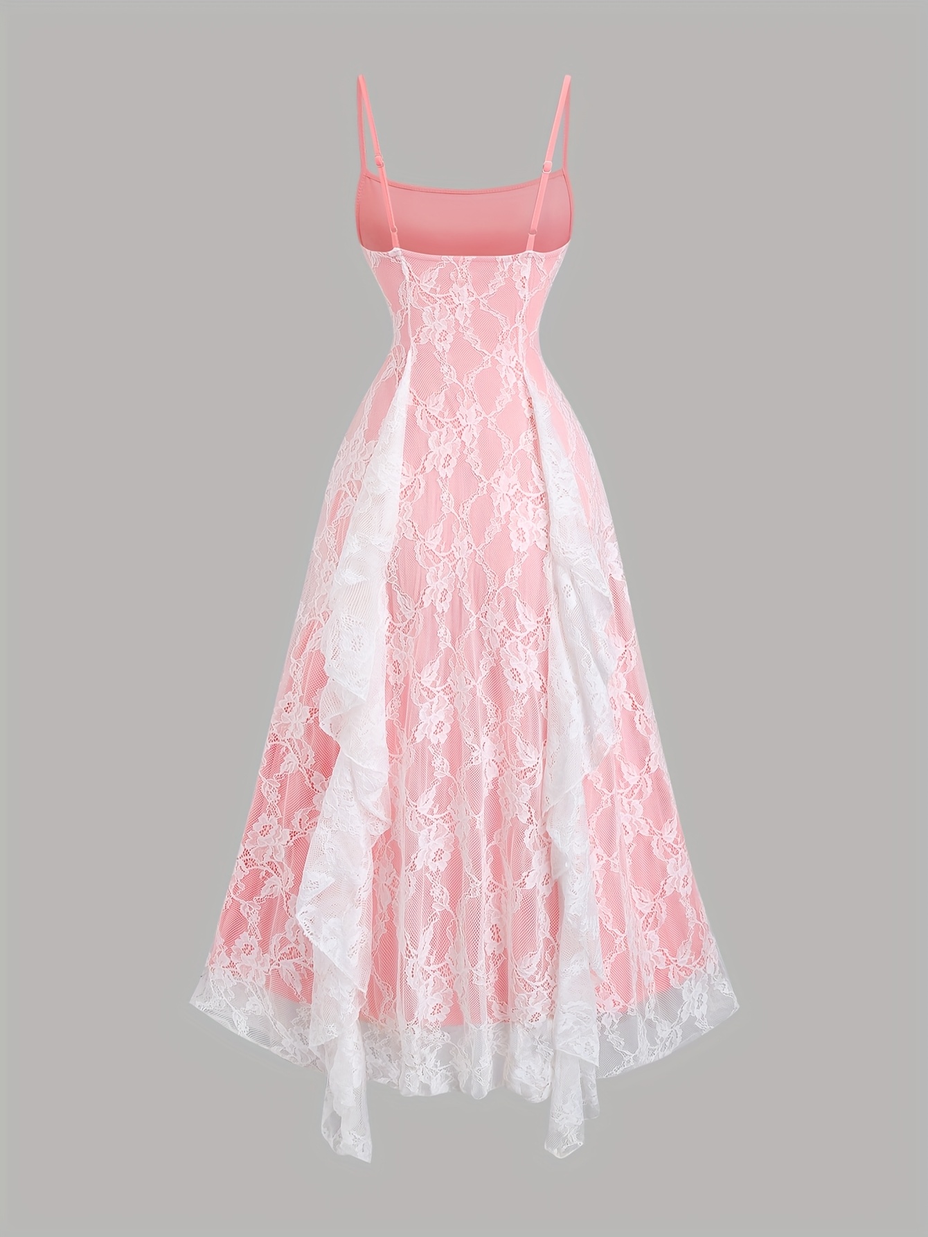 Elegant Off-Shoulder Lace Dress with Ruffle Hem and Bow Detail - Pink Floral Pattern, Sleeveless Summer Dress for Women, Perfect for Casual or Formal Occasions, Formal Attire | Offshoulder Dress | Lace Fabric