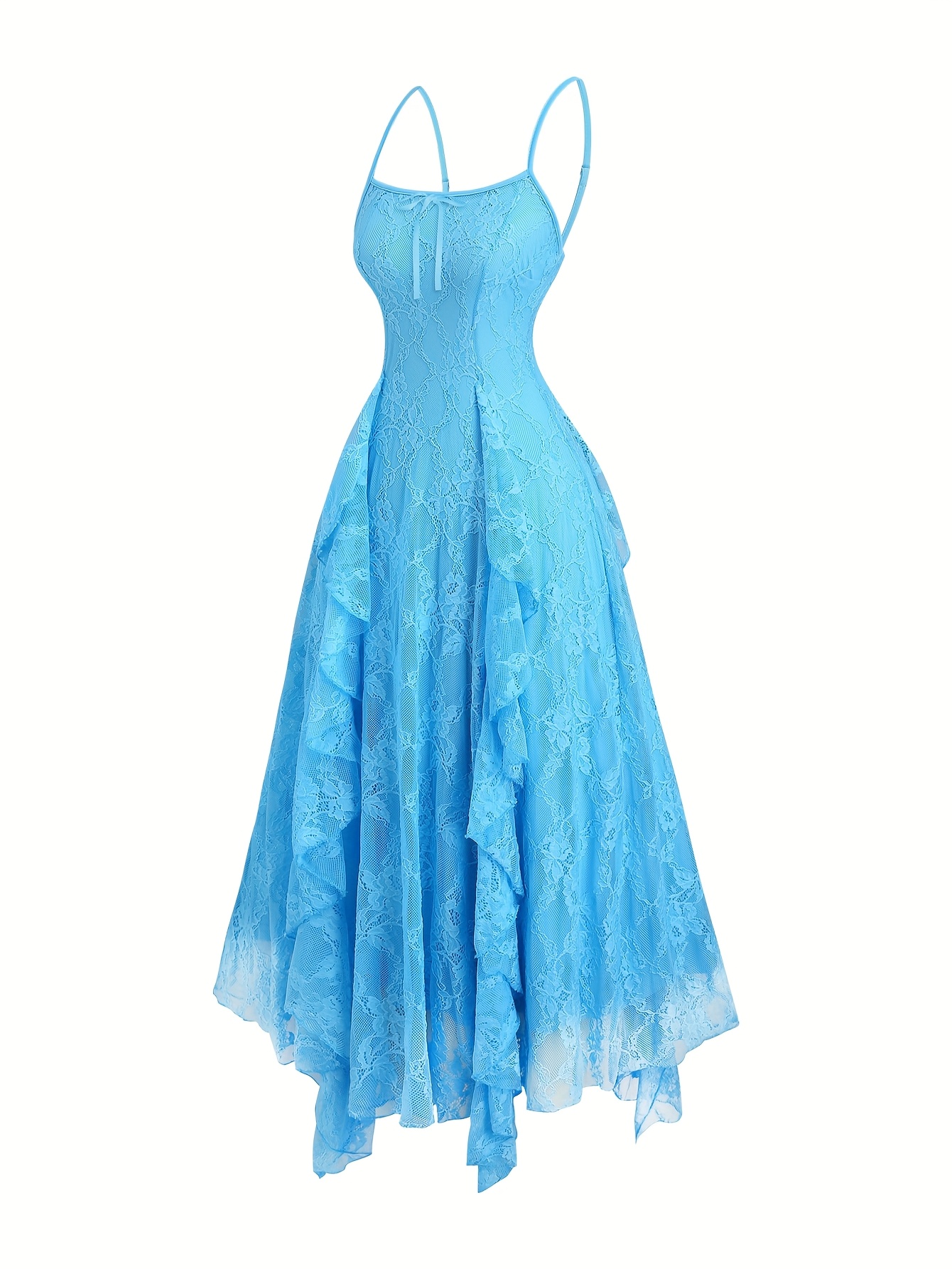 Elegant Off-Shoulder Lace Dress with Ruffle Hem and Bow Detail - Pink Floral Pattern, Sleeveless Summer Dress for Women, Perfect for Casual or Formal Occasions, Formal Attire | Offshoulder Dress | Lace Fabric